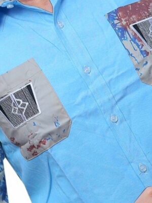 Men’s Navy Blue Embroidered Shirt | Formal African-Latino Fusion