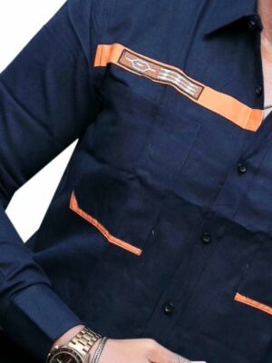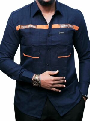 Men’s Navy Blue Horizon Strike Shirt | Orange Contrast Safari Style